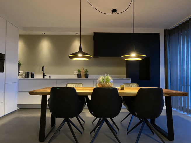 Een mooi nieuw appartement, daar gaan deze bewoners naar toe, alleen moet alles nog gedaan worden. De keuken was net besteld, en daar moest een mooi passend interieur bij gemaakt worden. Een luxe uitstraling en een ruimtelijk effect waren de wensen!